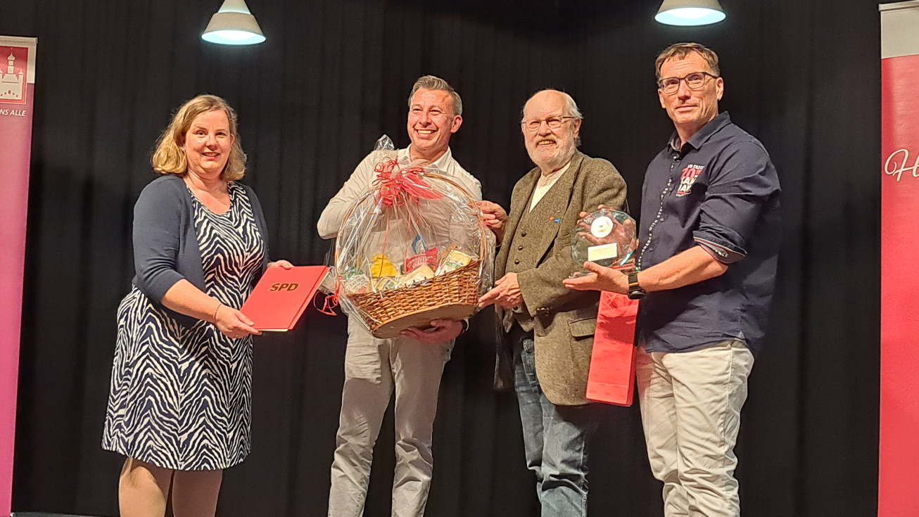 Katharina Schrader konnte gemeinsam mit ihren Stellvertretern Hans Jürgen Ulm und Thomas Wilhelm unter den Anwesenden zwei der sechs Neumitglieder des aktuellen Jahres begrüßen und ihnen das Parteibuch feierlich übergeben. Verhindert waren zwei weitere Jubilare. Deren Ehrung für 25 und 50 Jahre Mitgliedschaft in der SPD wird in anderem Rahmen nachgeholt.
